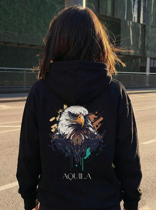 Elevate your winter style with the Aquila Majestic Eagle Premium Oversized Hoodie. Designed in rich bold black, featuring a powerful eagle graphic for a bold, iconic look.