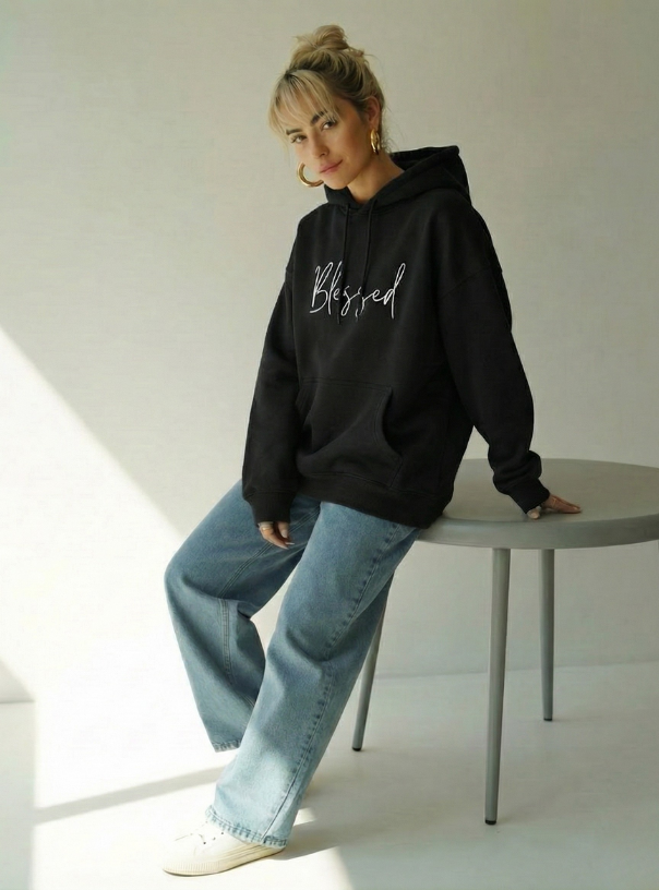 Wear Your Positivity. Blessed Premium is designed to keep you cozy and grounded. The bold yet elegant “Blessed” script is a subtle reminder to be grateful and keep your energy high. Its super soft, heavy-duty cotton fleece makes it perfect for the unpredictable Indian weather.