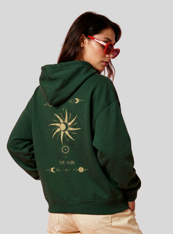 A premium oversized hoodie featuring a golden celestial Sun & Moon design perfect for comfort, style, and everyday wear.